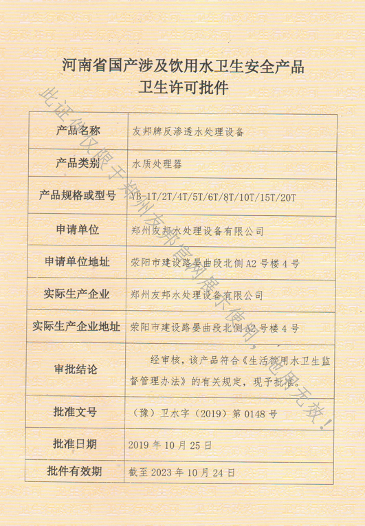 • 鄭州友邦水處理設備有限公司——營業執(zhí)照
